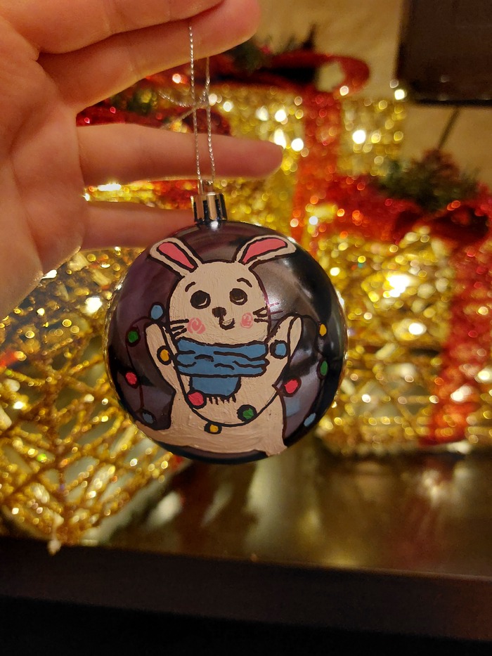 Но такой шарик с милейшим зайчиком и главными новогодними словами затмил все магазиные игрушки и стал самым главным новогодним украшением! От всей души благодарю за такой подарочек, растрогалась до слезок радости, безумно приятно чувствовать эту заботу и тепло ручной работы от совершенно незнакомого человека.