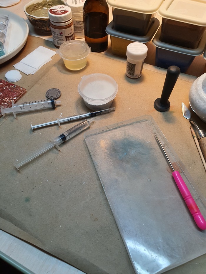 Для работы нужна ступка с пестиком, гладкая поверхность, мастихин, пипетка или шприц.