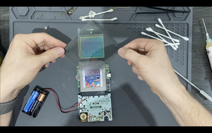 ВСЁ! Консоль полностью работает! Экран новый, кнопки работают, звук есть. Играю в Тетрис в его оригинальном виде – кайф!