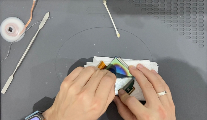 После каждого этапа очищал дисплей спиртом – и вот он полностью чистый!