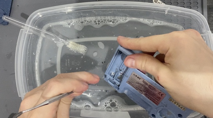 Когда я разбираю консоли для ремонта, их обязательно надо чистить. Иногда хватает спиртовой ватной палочки, но когда накапливается 2–5 грязных корпусов, проще разобрать их полностью, снять всю электронику и металлические части и устроить мыльную баню с зубной щеткой.