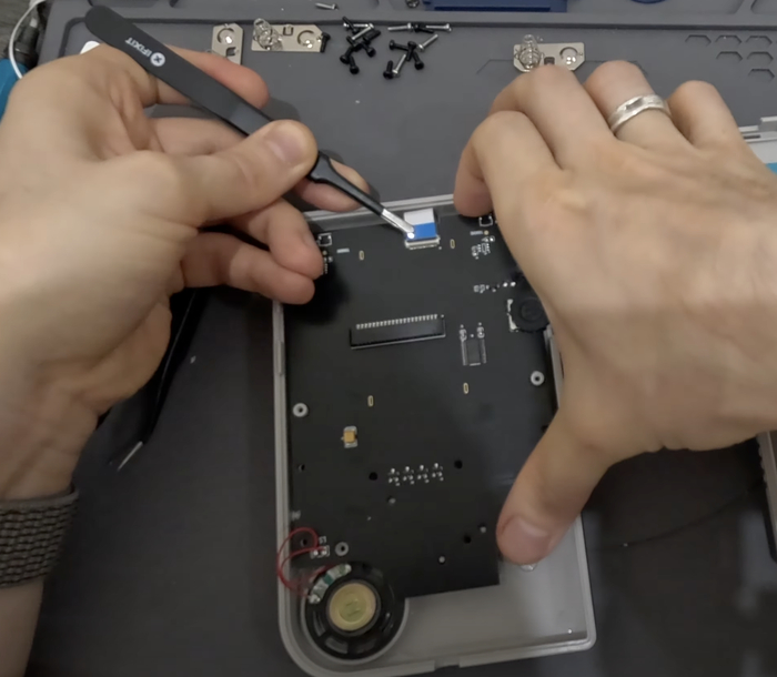 Самая частая проблема у DS Lite – деталь с шарниром. У каждой третьей консоли она треснута, из-за чего крышка не фиксируется и раскрывается на 180° вместо приятных 120°. Чтобы заменить её, нужно разобрать верхнюю часть консоли и аккуратно перенести на новую деталь дисплей, динамики, микрофон, антенну Wi-Fi и поворотный механизм.