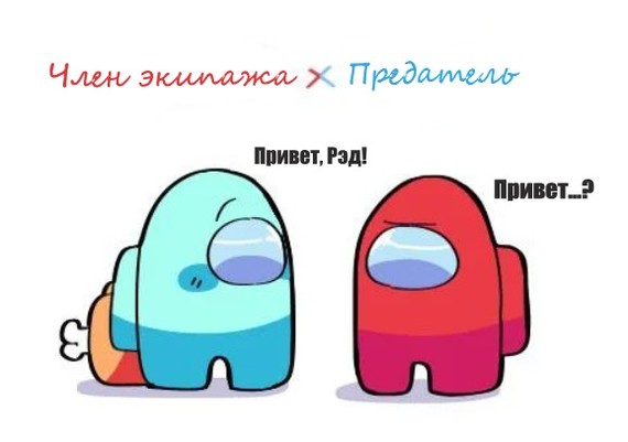 Циан и Рэд в разных ролях. Комикс Among Us