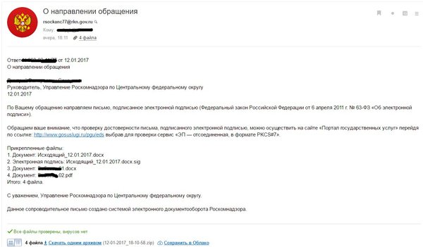 Замазываю имена и данные, а то мало ли, законы сейчас разные всякие, а я чего не знаю. Во вложениях к письму на скрине сверху мое исходящее обращение + вложенные мною же файлы. Ну хоть разберутся, вроде, надеюсь.