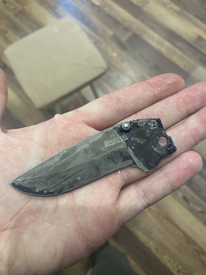 Итак. Есть у меня ножичек, купленный мной еще в школьные годы. Вполне простецкое поделие от magnum (boker), складень из 440 нержавейки. Повидал он всякого, включая довольно безалаберное отношение, что и привело к появлению косметических косячков.