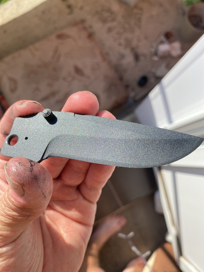 Пришло время снимать старое покрытие с клинка. Абразивом оказалось очень проблематично потому что покрытие довольно неплохо держалось и уходить не хотело.