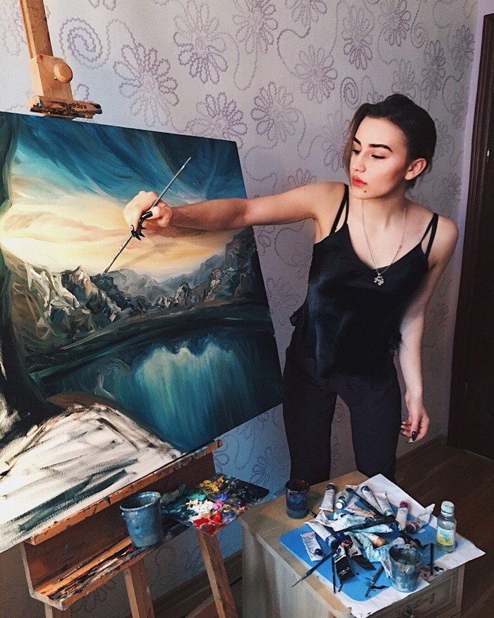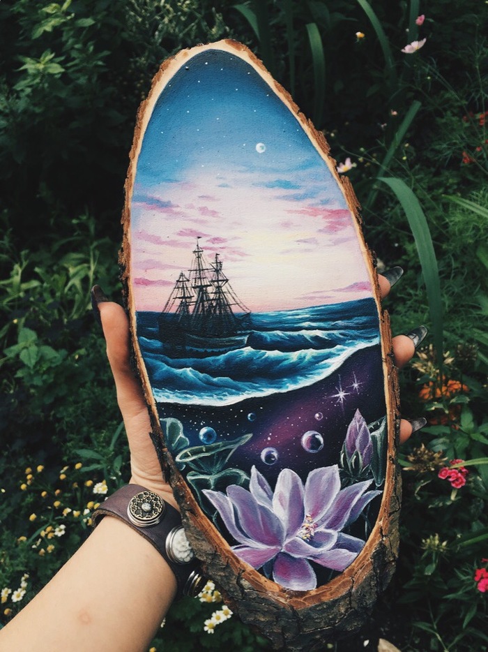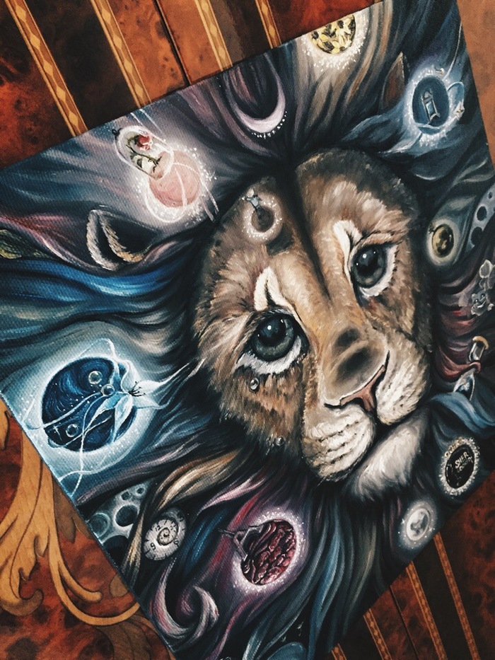 Когда только начинала писать эту картину, в голове неустанно крутилось название «Бремя», но после того, как я начала работать над достаточно пестрым лесом, эта тяжесть улетучилась.