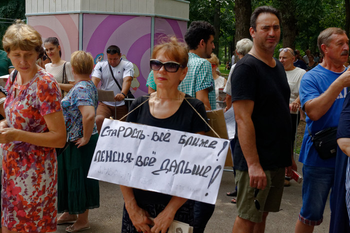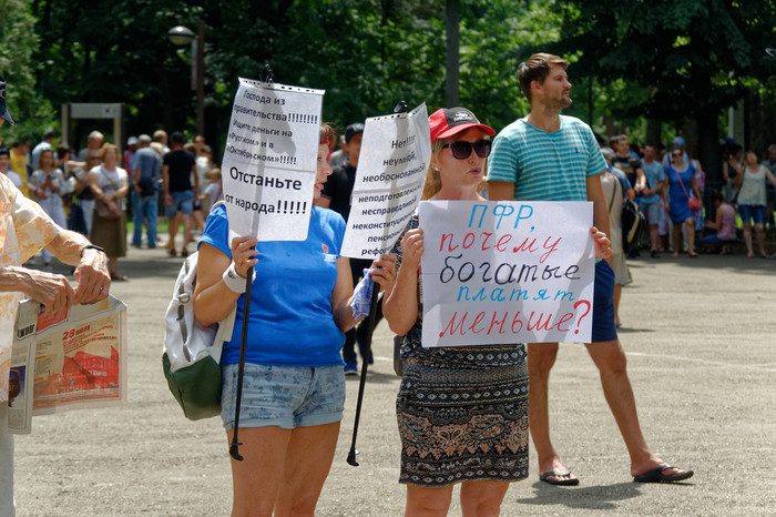 Итак в Краснодаре прошел митинг по поводу пенсионной реформы. Не сказать, чтобы было много народа, но и жара была сильная, так что... От себя отмечу хорошую организацию митинга, грамотную работу полиции. Все было мирно и профессионально. С трибун звучали требования активистов о смене правительства Медведева, партийные функционеры объясняли, откуда брать деньги надо без ущерба для народа, девочки и мальчики бегали и собирали подписи на подписных листах. В целом приятно, что народ все же на митинг пришел, значит пофигисты не все.