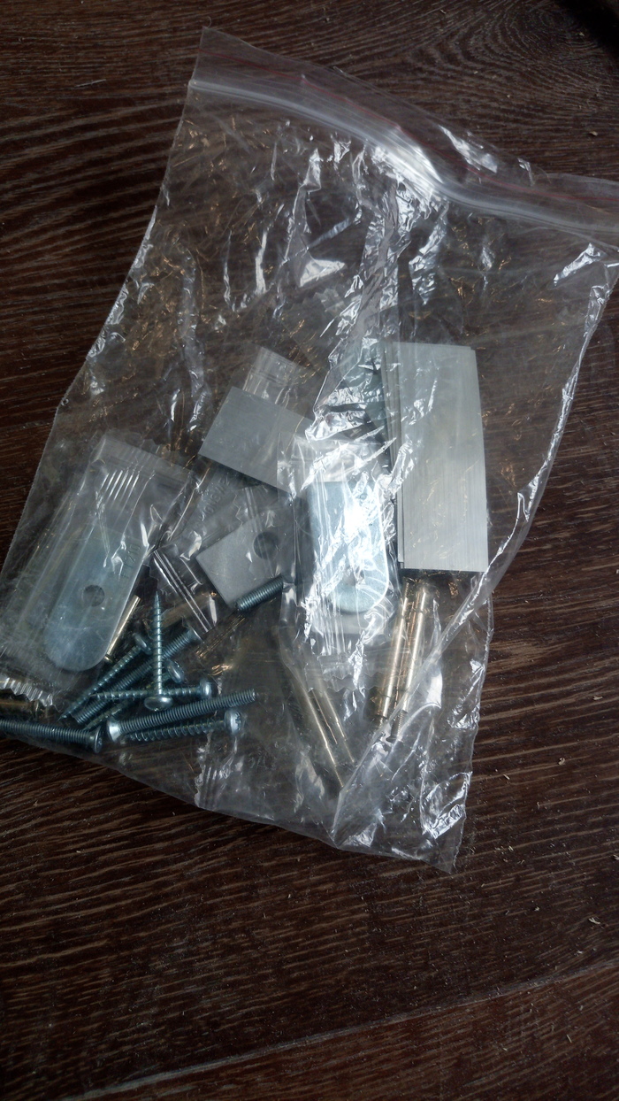 На каждую дверь используется по три петли.У меня получился один комплект фурнитуры для дверей прямого открывания и три комплекта для дверей обратного открывания.