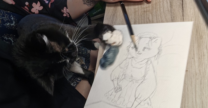 Я долго не могла к нему подступиться, что-то всё время не устраивало, и если в карандаше он выглядел хорошо, то мне совершенно не нравилось, как рисунок выглядит в цвете. Было решено отложить его на время. А сейчас по случайному стечению обстоятельств я начала работать над проектом со схожей идеей. Недолго думая я решила использовать свою наработку, единственное нужно было поменять формат на вертикальный. Ну и за один день работа была отрисована) Выходит, она ждала своего часа?