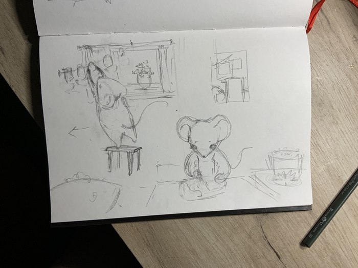 Сестренке в художке задали нарисовать иллюстрацию про сказочный лес и меня как ответственную за рисование зверушек попросили помочь. В традишке скетчи я делаю крайне редко, но мне получившийся набросок даже понравился, ну и я подумала, что было бы неплохо когда-нибудь его доделать.