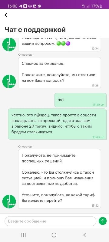 Оператор (какой по счету?) сказал мне, что всё ок и я скоро буду на новом тарифе, буквально через 10 минут. Через два часа я зашел в приложение и увидев прежний тариф, почуял неладное.