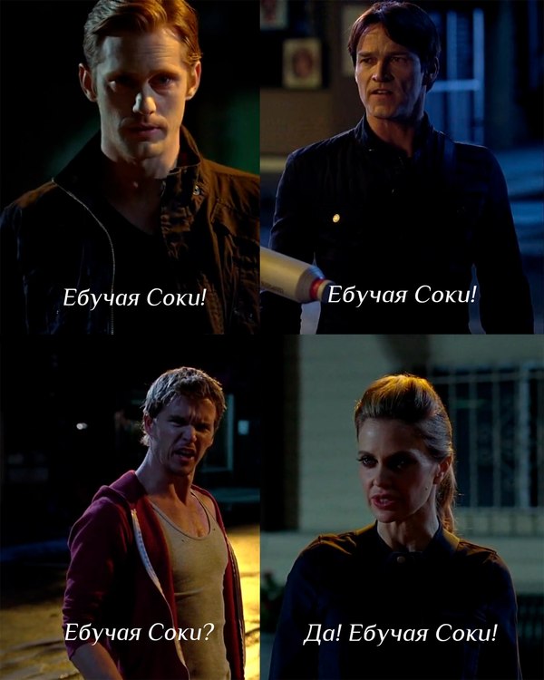 Эрик Нортман – 1000-летний вампир-викинг и первый адекватный персонаж этого дурдома. Опытный, жестокий и самодовольный, не считая временного помутнения в четвертом сезоне (все та же солнечно-цветочная кровь Соки). Персонаж с интересной историей, любит себя, секс, кровь, деньги, лежать на заснеженной равнине родной Швеции голым и еще немного себя. Владеет вампирским баром Fangtasia (fantasia + fang [клык]).