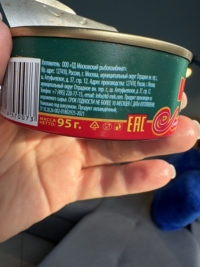 Открыла. Там какая- то оранжевая жидкость и немного икры. Наелась, блин.