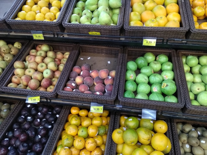 Первое, что делает большую разницу между бразильским и нашим супермаркетом это, скорее всего, фрукты и цены на них.