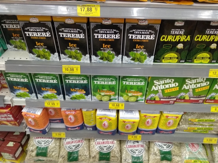Ещё одна особенность бразильского супермаркета - чай мате или тэрэрЭ) Ну, и специальные чашки к ним. Крепкая штука, я пью редко, но порой вот прям с охотой)