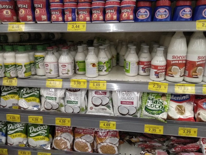 И, конечно, в стране пальм и кокосов в магазине всегда можно найти куча разной кокосовой стружки и молока. По поводу кокосового молока у меня вообще это одно из самых больших разочарований в жизни) Я думала, что кокосовое молоко по вкусу как кокосовая стружка и прочее. Я в первые же дни в Бразилии пошла в магазин и с дуру купила 1 литр кокосового молока... Когда я открыла первую баночку, в нос ударил резкий необычный запах. Ну, подумала я, может запах такой... странный. А на вкус норм будет. И взяла и с горла сразу немного отхлебнула... Я думала, что блевать буду дальше чем вижу. Редкостная гадость. Только потом до меня дошло поискать хоть немного об этом молоке в гугле и понять что это вообще такое) Конечно, кокосовое молоко - штука хорошая, но только если знать как использовать)