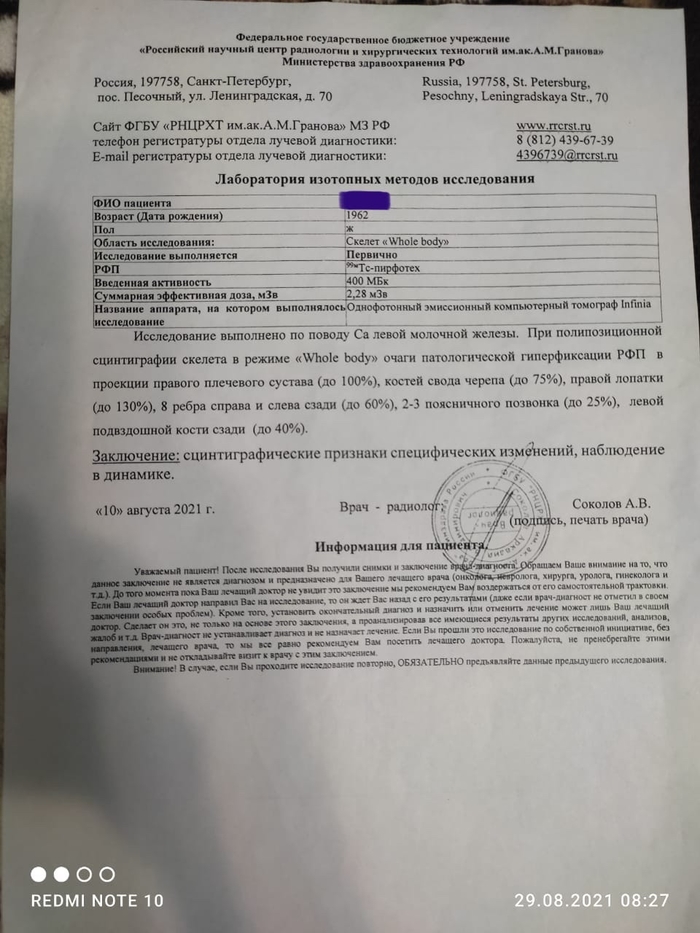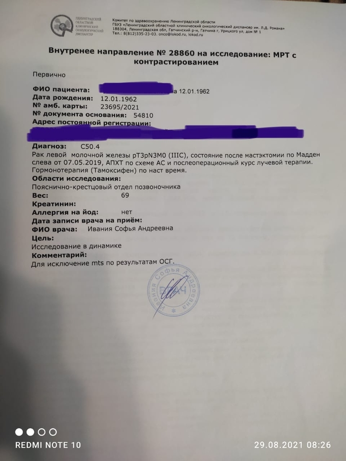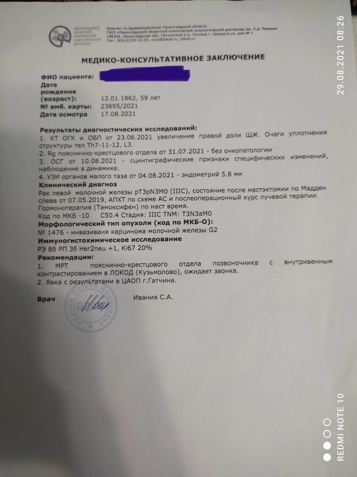 Здравствуйте. В семье произошло несчастье, и к любимой тете вернулся рак. Рецедив. Ранее пройдены курсы химиотерапии, операция, При поступлении в больницу (Гатчинском ЦКРБ), дают неутешительные прогнозы, счёт идёт на дни. Как такового лечения нет, только обезболивают. Тетя в тяжелом состоянии, даже говорить не может. Дали направление в РНИИТО им. Вредена. Но у них ближайшее время приема-октябрь. Деньги не собираем, не просим. Просим лишь информационной помощи- что стоит делать, какой прогноз? Пытаемся пробиться платно-результата нет, все занято. Может кто то может посоветовать врача или клинику? Пруфы ниже.