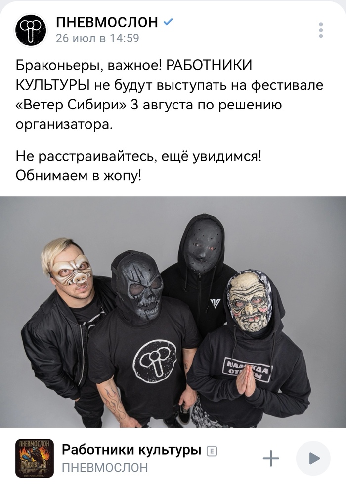 В 2022 году первый рок-фестиваль "Ветер Сибири" был отменен по каким-то выдуманным ковидным ограничениям, а позже его перенесли в Новосибирск на год вперед. Наверное, это и был звоночек, но меня тогда это не волновало.