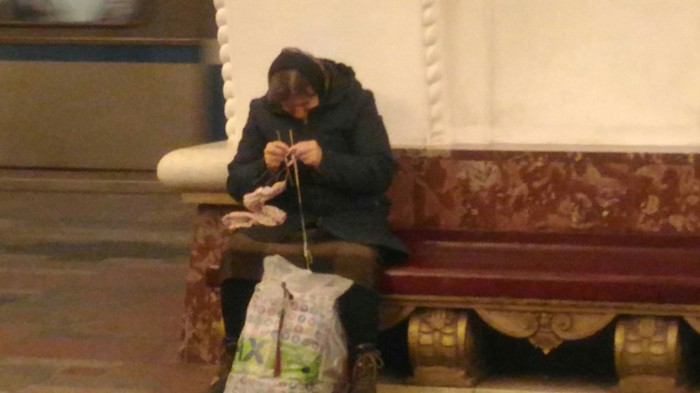 Стоит попрошайничает. Молодой крепкий мужик. На самом деле их там трое и лица очень злые, реально злые, даже опасные какие-то, с таким фейсом денег не просят по идее.