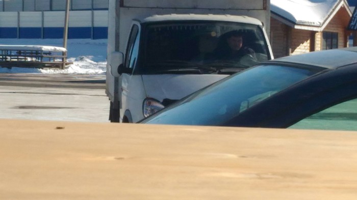 Все те-же лица. А вот стоит машина, водитель которой занимается доставкой