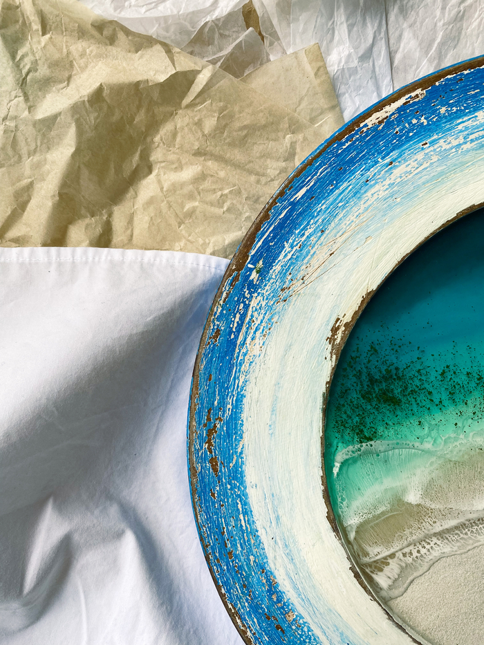 Для моря потребовалось 600 грамм густой эпоксидной смолы, спиртовые чернила и диоксид титана.