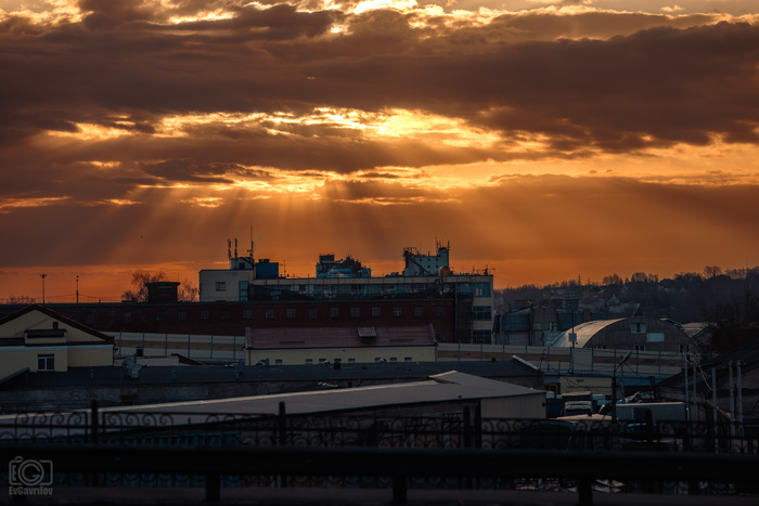 Я фотограф, и когда позволяет время, на съемки и с них домой иду пешком, ведь никогда не знаешь, какое внезапное шоу устроит тебе природа или город. Вот, как здесь, непримечательное серое утро буквально на несколько минут раскрасило небо такими потрясающими лучами, что чуть не опоздал на работу, пока ловил их!