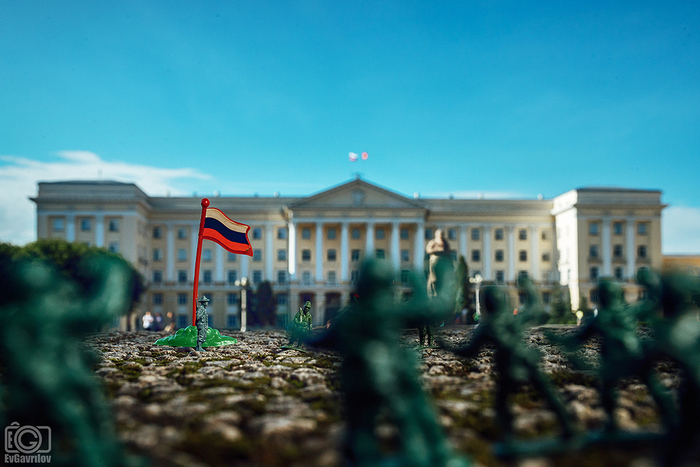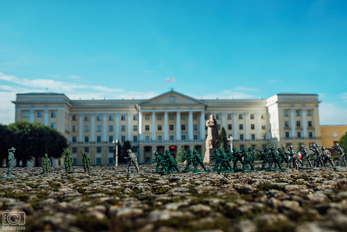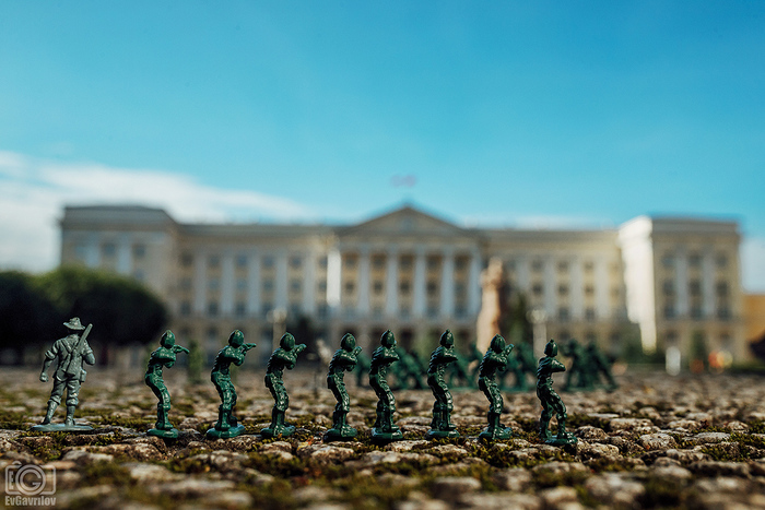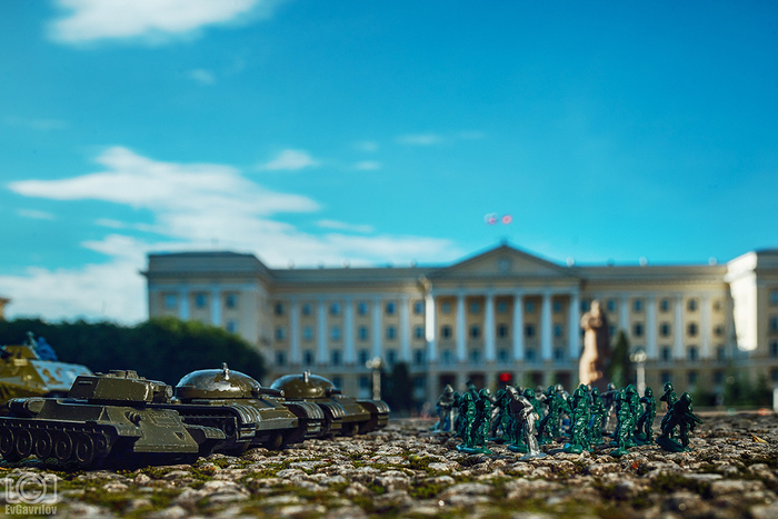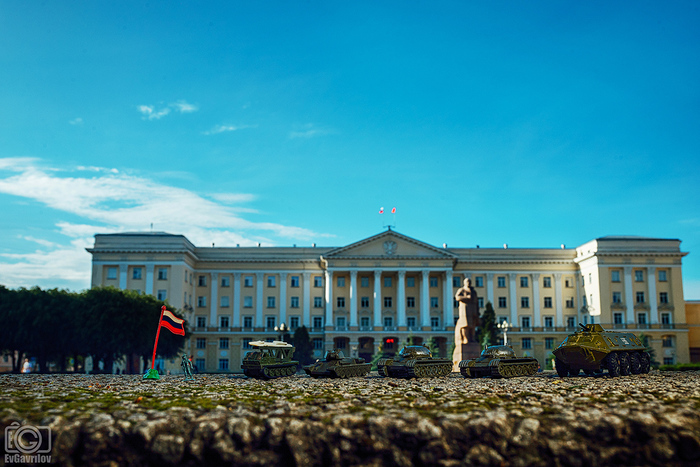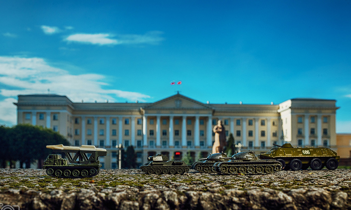 Если тебе, как и мне непонятно, зачем рисковать здоровьем военнослужащих, которых уже завтра построят на главных площадях городов-героев для проведения парада, то мой фотопроект снимался как раз для тебя. Место действия - Смоленск, площадь Ленина, техника и пехота из личных запасов, чудом пережившая детство 90-х.