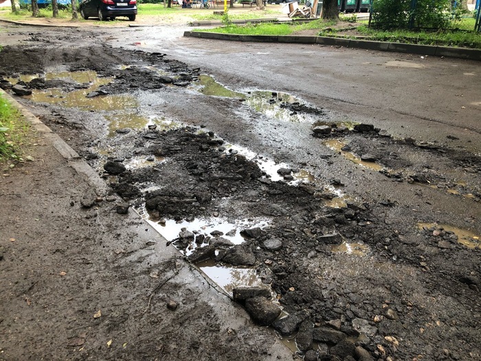 Прошедший дождь уже вовсю ликвидирует наш замечательный ремонт за наши же деньги... А если до этого можно было хотя б пройти вдоль ям, теперь мы еще и в квартиры эту грязь ногами несем.