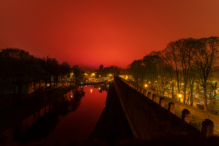 Не я один, многие коллеги из других изданий тоже занимали ближе к вечеру красивые обзорные точки, готовясь снимать привычную красоту. В прошлом году нам подпортила праздник столица - их традиционный разгон облаков перегнал дождь к нам, и тогда в туманной мороси все, что было видно в 100 метрах от стадиона, откуда пускали залпы, это вот такие цветные всполохи. Ну ок, погода, никто не виноват. А сейчас что?