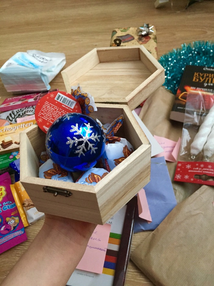 ну и конечно же много сладостей, угадали с моими любимыми конфетами)))а этот светильник мишка теперь будет создавать нам новогоднее настроение, а украшения теперь обновят нашу ёлочку! Хочется сказать много слов благодарности, но это получится целая статья!Просто спасибо, огромное спасибо за новогоднее чудо, верьте в чудеса!Спасибо нашему деду морозу, мы прониклись подарками и доброй и чуткостью вашей семьи, к сожалению не могу найти вас по нику, отпишитесь, что увидили наш пост)))Всем спасибо!Верьте в чудо и доброту!!!