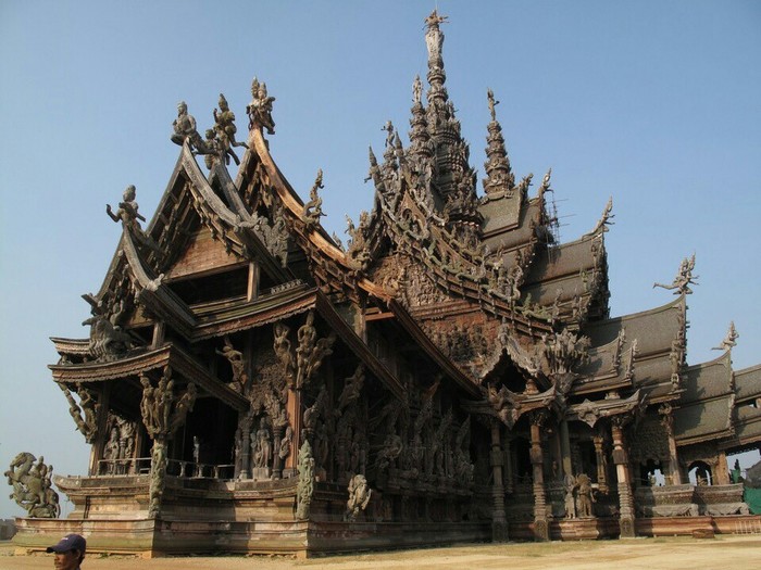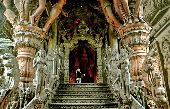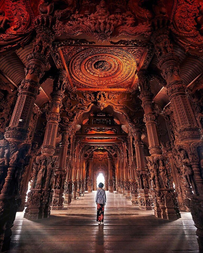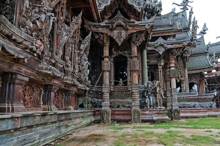 Здание было построено с использованием древних знаний тайского строительства и резьбы по дереву, каждый квадратный сантиметр храма - это деревянные резные скульптуры и орнаменты на религиозные и мифологические сюжеты Камбоджи, Китая, Индии и Таиланда. Целью такого украшения является использование искусства и культуры как отражения древнего видения Земли, древних знаний и восточной философии.