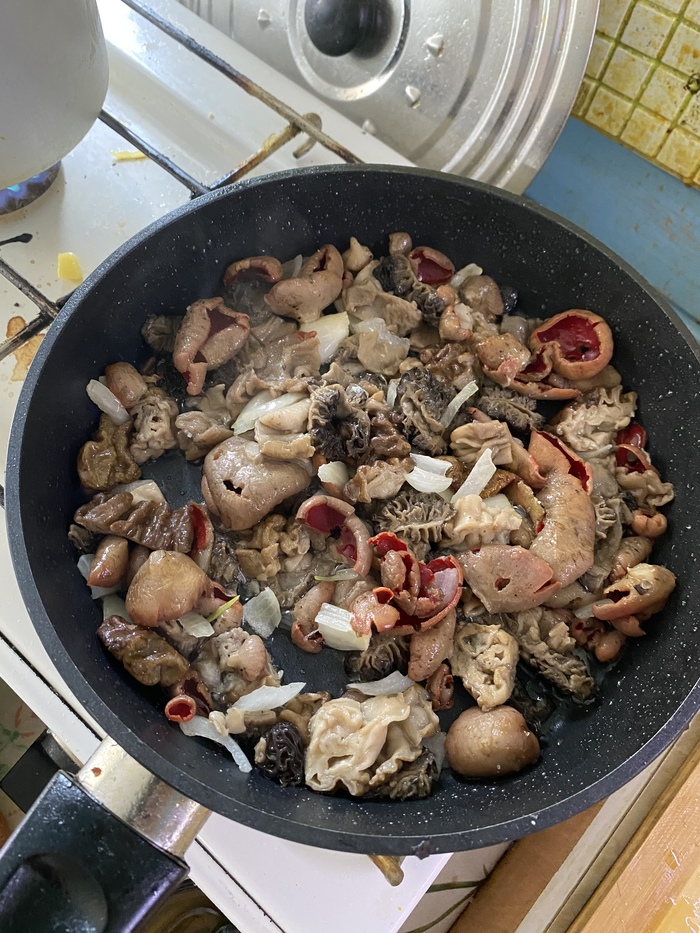 Всем привет! С большим опоздание решил запилить пост о первых грибочка в этом году. 12 мая в Клинском районе вышли с дочкой в лес за саркосцифами, и заодно зацепили шикарный строчёк. И в огороде еловые стружки порадовали огромными сморчками. Набралось на сковородочку. Всем хорошей охоты!