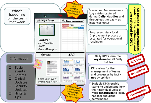 1. Ежедневные встречи (Daily Huddles) для поддерживания коммуникации внутри команды, определения возможностей для улучшений и обзора производительности