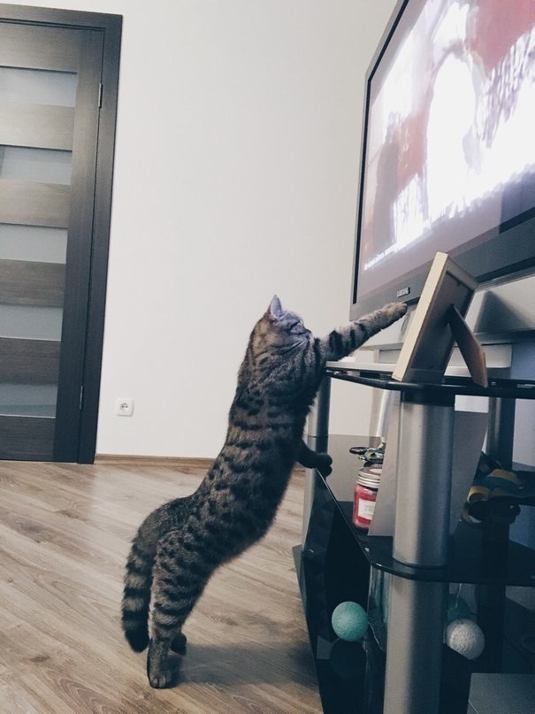310 Evgenius777 Котомафия Может на рыбок посмотрим? 7 лет назад Я сам знаю, на каком они канале. Показать полностью 2 Фотография Кот Телевизор Длиннопост