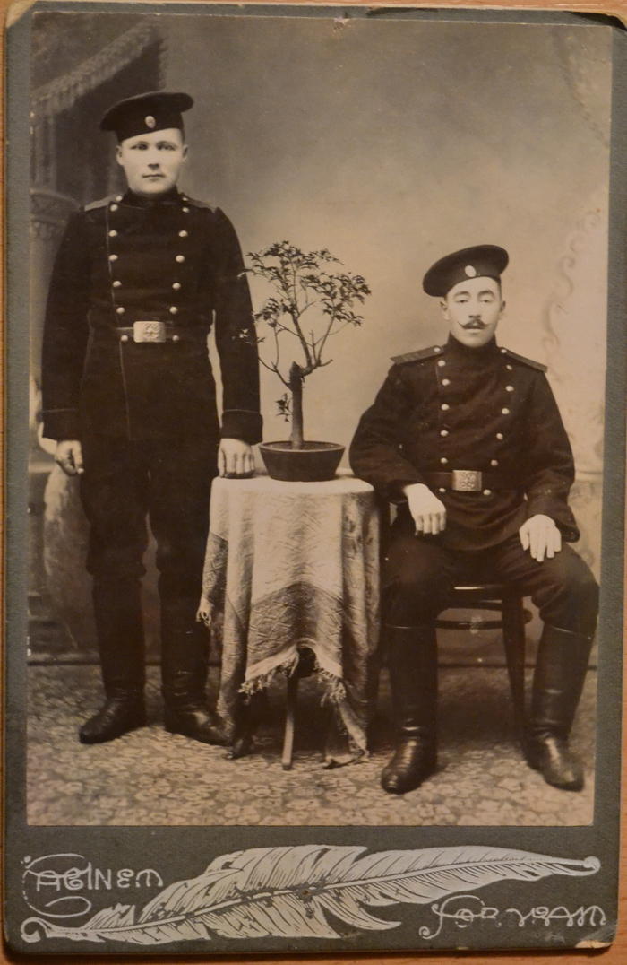 Нашел саму старую фотографию в семейном альбоме - 1911 год, родственники по бабушкиной линии (братья Овсянниковы, Омск).