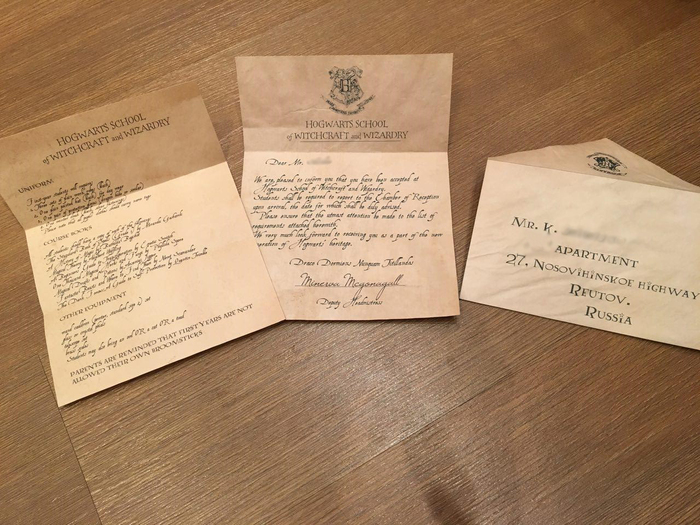 И вот, нам попался в "жертву" пикабушник Ш. Кирилл Игоревич, большой и бородатый, который играет в баскетбол, немного на гитаре и любит музыку. Это всё, что было известно о нём, хотя тем и интереснее ведь :) Мы взяли по чуть-чуть из того, что интересно нам и совместили это с его интересами. Так как Новый Год - это не просто праздник, а праздник волшебства и сюрпризов, то что может быть более волшебно, чем атрибут из волшебного мира Гарри Поттера - письмо из Хогвартса?! Получить такое письмо пусть и не в одиннадцать лет, но всё же приятно!