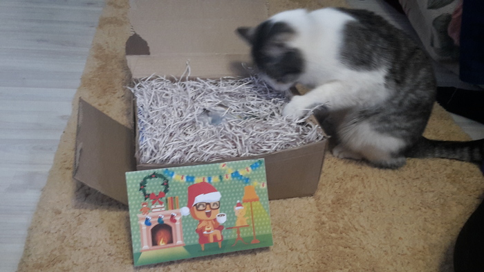 Придя домой, посылка попала в лапы к инспектору Пикселю, который тщательно изучил всё её содержимое.