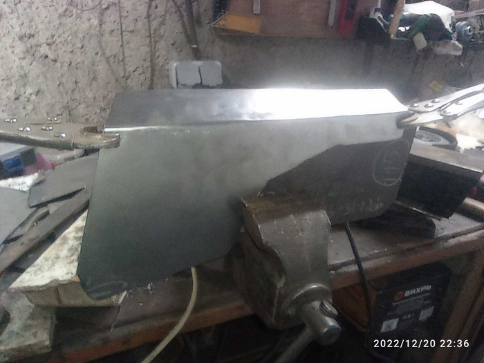 Опыта в таких работах нет, опыта сварки тонкого металла тоже, из инструментов только молоток, тиски, зубило и т.д., но есть желание научиться. Тут еще и сосед по гаражу подогнал 3 стиральных машины производства СССР. Смотрим кучу видосов по изготовлению кузовных деталей, пробуем делать. Для начала покупаем 2 болгарки, себе и жене.