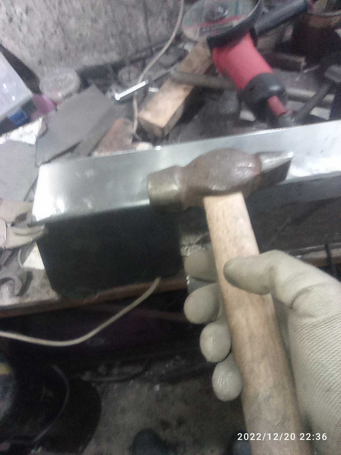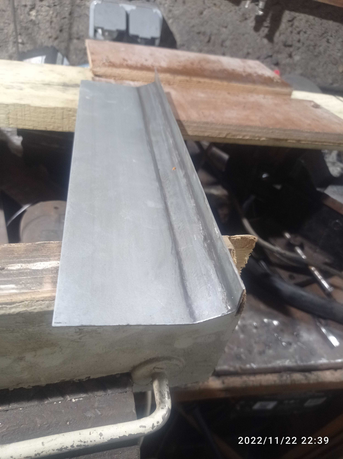 Т.к. шринкера-стретчера нет, а согнуть деталь надо, убираем лишний металл болгаркой и сгибаем