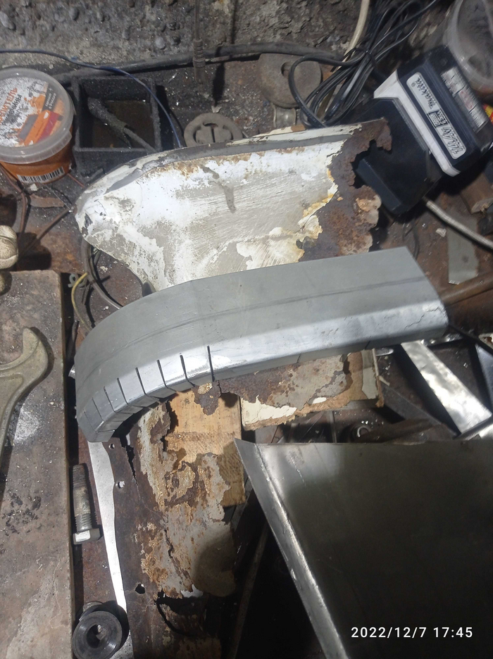 Ну и дальше вырезаем куски кузова, гнём из стиральных машинок похожие, обрабатываем места стыков изнутри цинковым грунтом, привариваем: