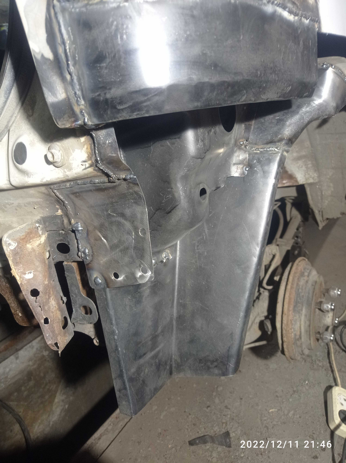 Это всё было зачищено и загрунтовано. Приварить пока не могу (не к чему), дальше надо каким-то образом переварить моторный щит снизу. Мешают тормозные трубки, рулевая рейка и лыжа на которой прикручен двигатель с КПП. С внутренней стороны мешает торпедо. Несколько дней уже хожу вокруг него с задумчивым видом и депрессивными мыслями. Сегодня по планам: попить пива с нагетсами и подумать как это все делать с минимальными потерями времени, сил и денег)