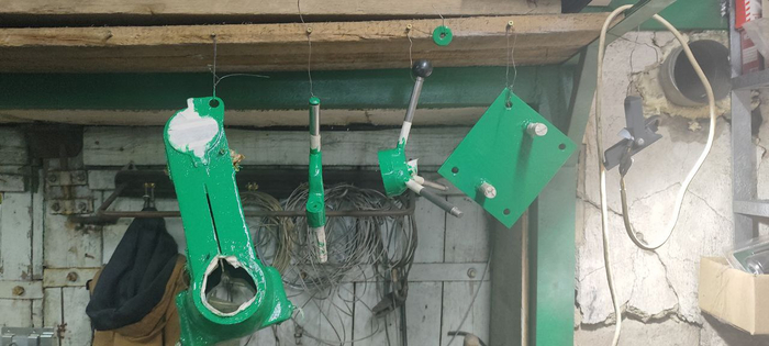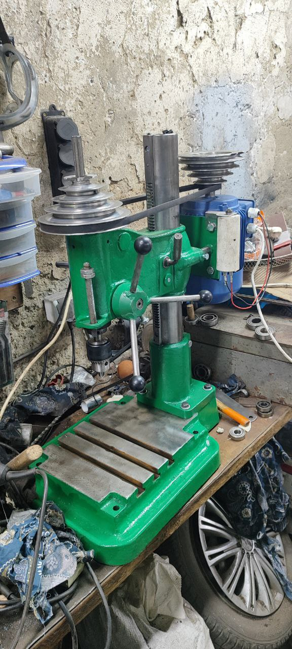Купил новые подшипники, новый двигатель, новый патрон под B16, изготовил крепление двигателя, на работе выкупил 2 списанных шкива (один сломан сверху, другой снизу), покрасил