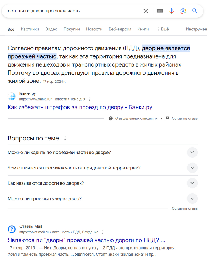 Нашёл в инете городской номер и по нему дозвонился практически моментально. С женой прыгнули в такси и поехали выручать наш автомобиль с штрафстоянки, всё-таки мы были в отпуске и автомобиль нужен постоянно. Естественно, что там нам, так сказать, поводили по губам и сказали ждать трёх часов ночи, когда придёт инспектор. А заодно и назвали причину задержания. Я был готов к тому, что я загородил кому-нибудь проезд, хоть и встал максимально аккуратно. Но мне предъявили, что мой авто стоял вторым рядом от края проезжей части. Тут я прямо-таки охуел. Во дворе есть проезжая часть? Мир буквально дополнился новыми знаниями. Не подумайте, что я дебил, но проезжая часть по ПДД это не просто место, где могут ездить машины. Почувствовав, что моё очко смазывает система правосудия, я начал усиленно гуглить.