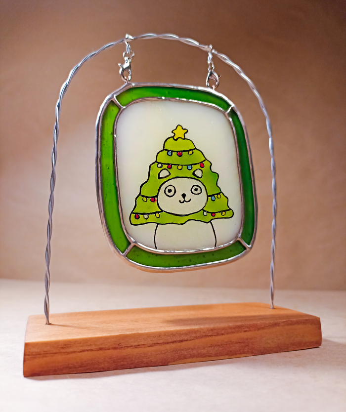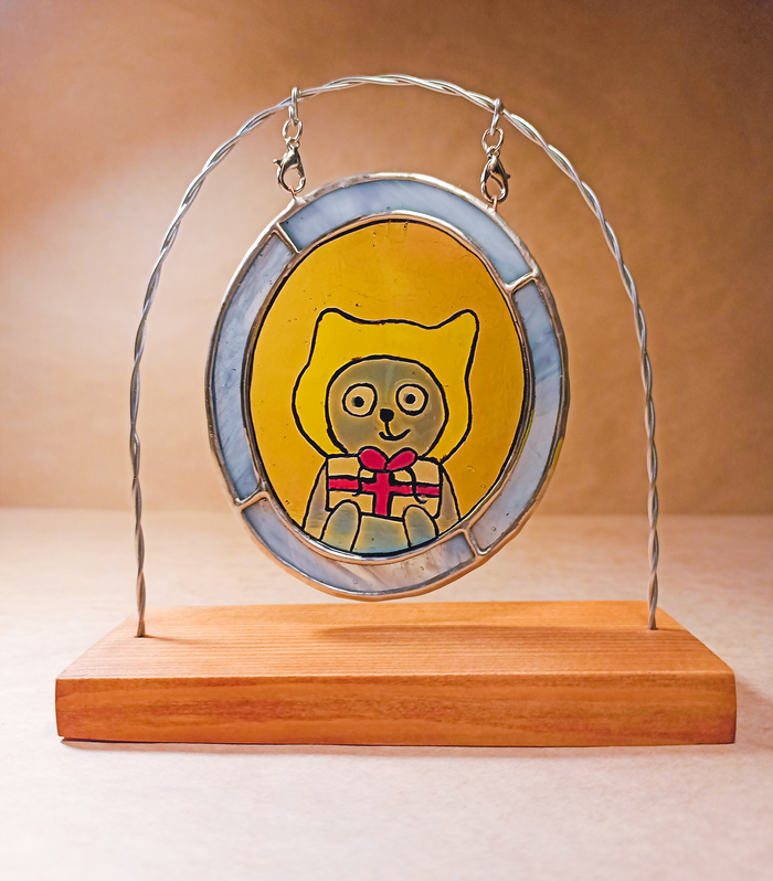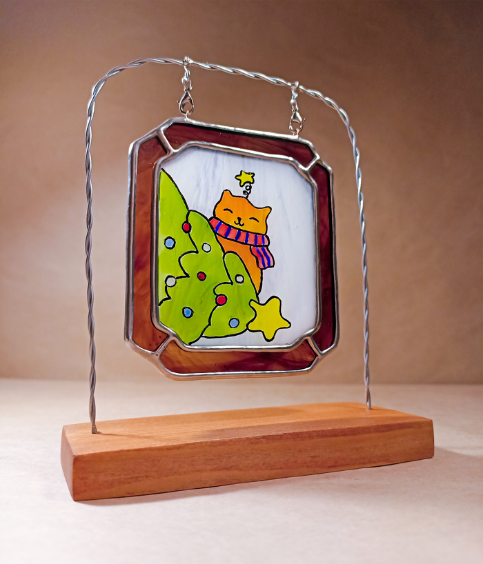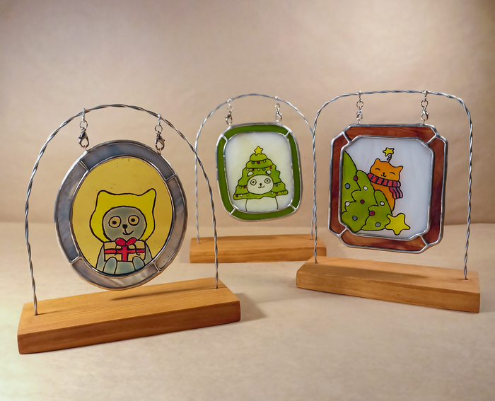 Последний этап – нанести краску и собрать витраж. Вот так получились зимние котики. Пока они стоят на подставках, а потом, возможно, отправятся украшать ёлку🌲