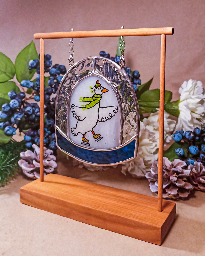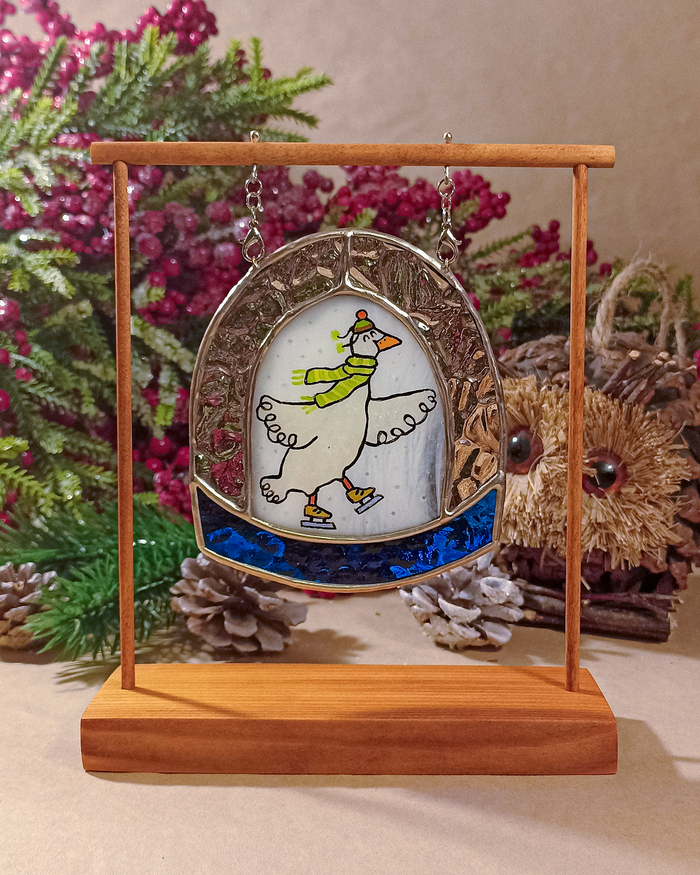 Все пикабутянам зимний привет! Давненько я кружил вокруг одного нового витражика, как кот вокруг ёлки. Началось все с Пинтереста — увидел там прекрасную иллюстрацию гусяша на коньках. Ох, выглядел он прекрасно! Сразу вспомнилось как в детстве катался на коньках. Как сейчас помню, родители где-то нашли мне фигурные коньки, это которые белые на каблучке и с зазубренами на носу. И я в спортивных штанах, зимней куртке и в этих коньках гонял по льду. Да, ностальгия! Как говорится раньше и трава была зеленее. Надо бы в этом году вспомнить детство и где-нибудь, как говорится, повторить, но аккуратно😊