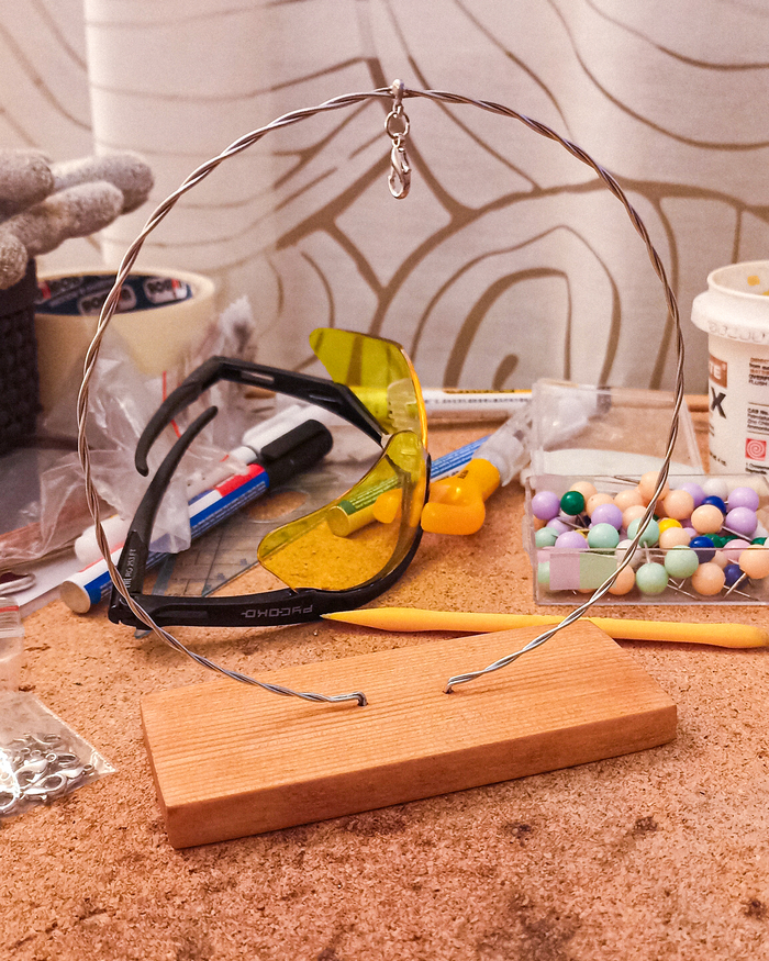 Предпоследний этап — заливка эпоксидной смолой. Смолу тщательно замешал, затем после заливки аккуратно прижег зажигалкой, чтобы убрать пузырьки воздуха. Было волнительно, ведь это был всего третий раз, когда я работал со смолой. Вдруг не застынет?