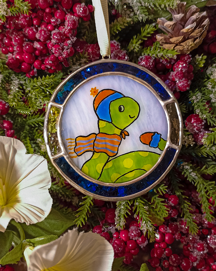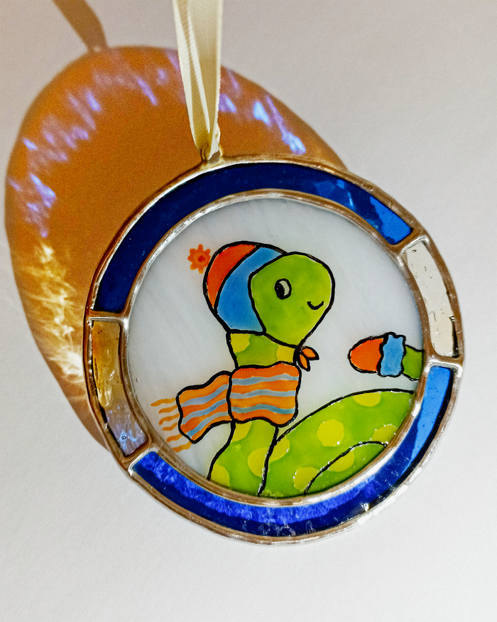В финале остался только рисунок витражными красками – и всё! Зимняя змейка готова! 🐍