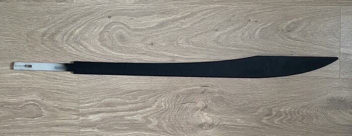 Далее меч был передан для испытаний, и увы, такая конструкция оказалась недостаточно прочной, первый от рукояти стык не выдерживает резких замахов и трескается... В дальнейшем пересмотрю усиление, поскольку в остальном печатный меч оказался удобнее покупного, при этом масса мечей отличается всего на 40 граммов... А данный меч отправляется на перекраску и займет место на полке в качестве элемента интерьера.