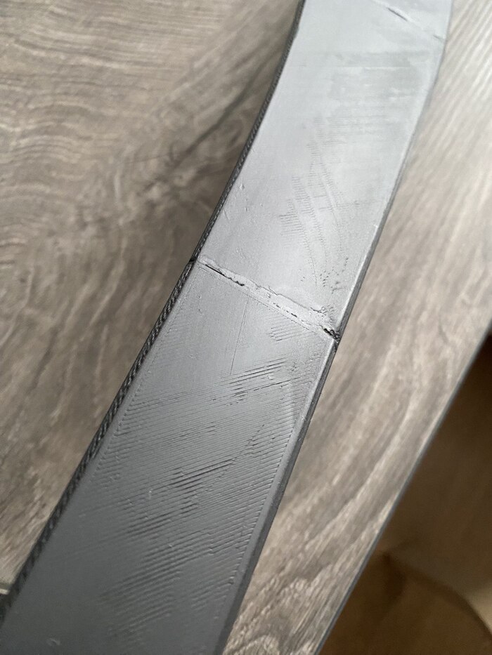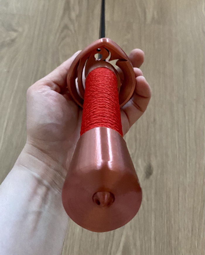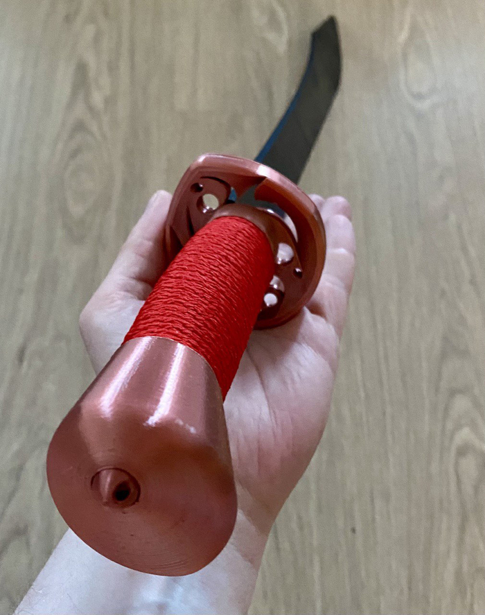 На рендере рукоять тоньше, сделано это специально, чтобы после печати сделать обмотку 4мм плетеным шнуром.